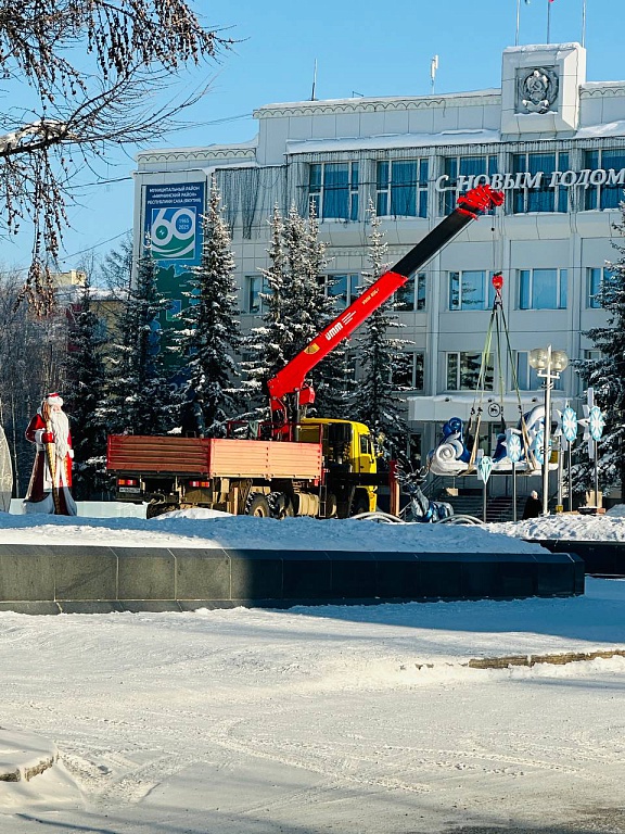 Сегодня, 17 февраля, начался демонтаж новогоднего убранства на площади Ленина Мирного.