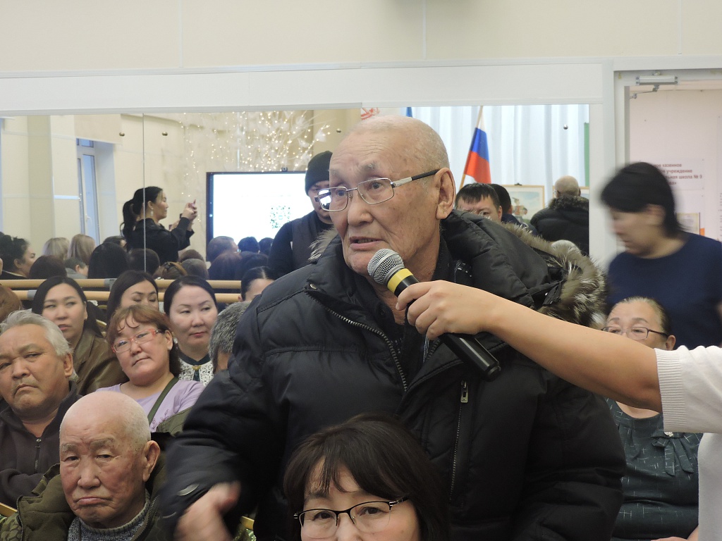 С отчетом перед жителями Тас-Юряха выступила его глава Агния Симонова, затем с информацией – глава Мирнинского района Александр Басыров.
