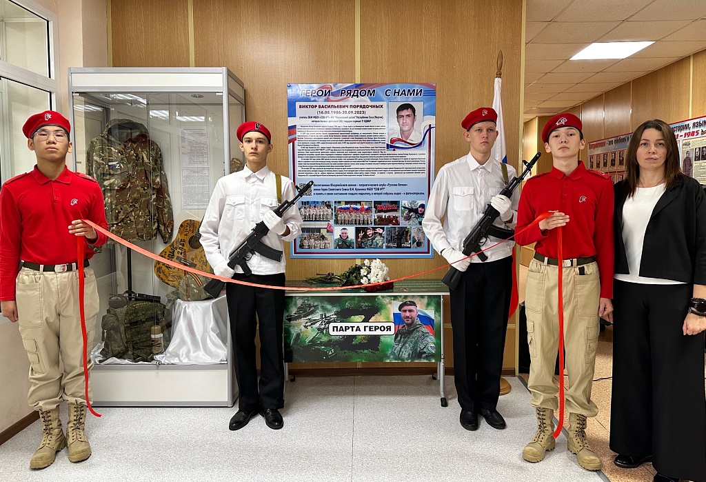 30 сентября в школе №7 г. Мирного состоялось торжественное открытие Парты героя и музейной экспозиции, посвященной учителю ОБЖ, ветерану боевых действий СВО, гвардии сержанту 11 ОДШБР Виктору Васильевичу Порядочных.