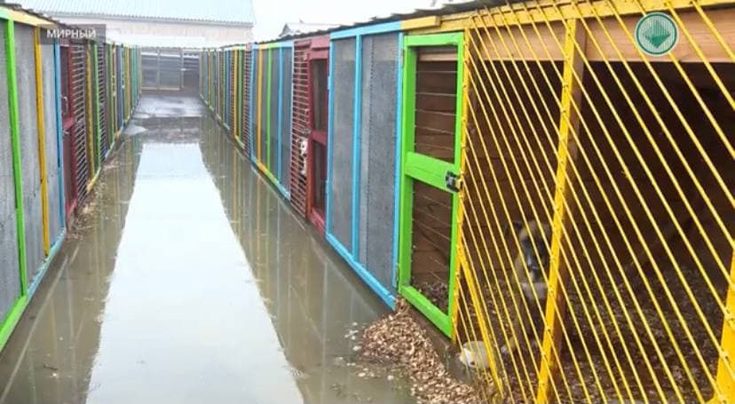 Мирнинский пункт передержки животных сейчас ведет подготовку к зимнему периоду Вольеры скоро начнут утеплять. В прошлом году на вольерах была установлена сетка рабица, которая легко поддавалась зубам животных и давала выход на волю, а для крыш использовался ондулин, который также портился и пробивался. Сейчас произведена установка железных прутьев и крыш. Через них побег становится невозможным.