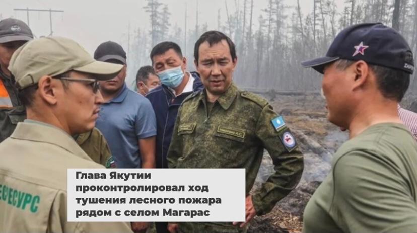 Айсен Николаев проконтролировал ход тушения лесного массива поблизости с селом Магарас. В улусе тушат 13 пожаров, задействовано 479 человек и 65 единиц техники.