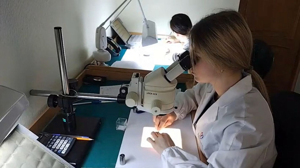 Ведущий эксперт по оценке алмазного сырья Ольга ЮСУПОВА рассказала, что рабочие столы сортировщиков алмазов накрывают белой бумагой, что никак не может повлиять на цвет камня.