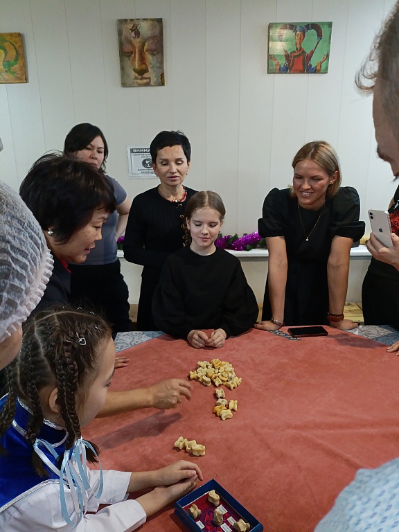 Пока созданные руками участников мастер-класса буузы готовились, все играли в «Шагай наадан». Эта игра – еще одно интереснейшее явление бурятской культуры. Играют в нее косточками. А если говорить точнее – бараньими лодыжками.