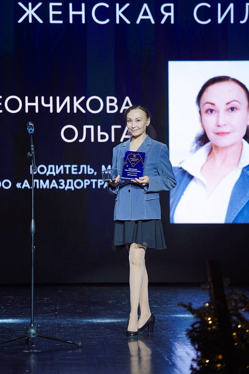 В номинации «Женская сила» победа была присуждена водителю автомобиля МАТП «Алмаздортранс» Ольге Леончиковой, которая работает в АЛРОСА уже 35 лет и активно занимается спортом, являясь призером соревнований по фигурному катанию, легкой атлетике и лыжным гонкам.