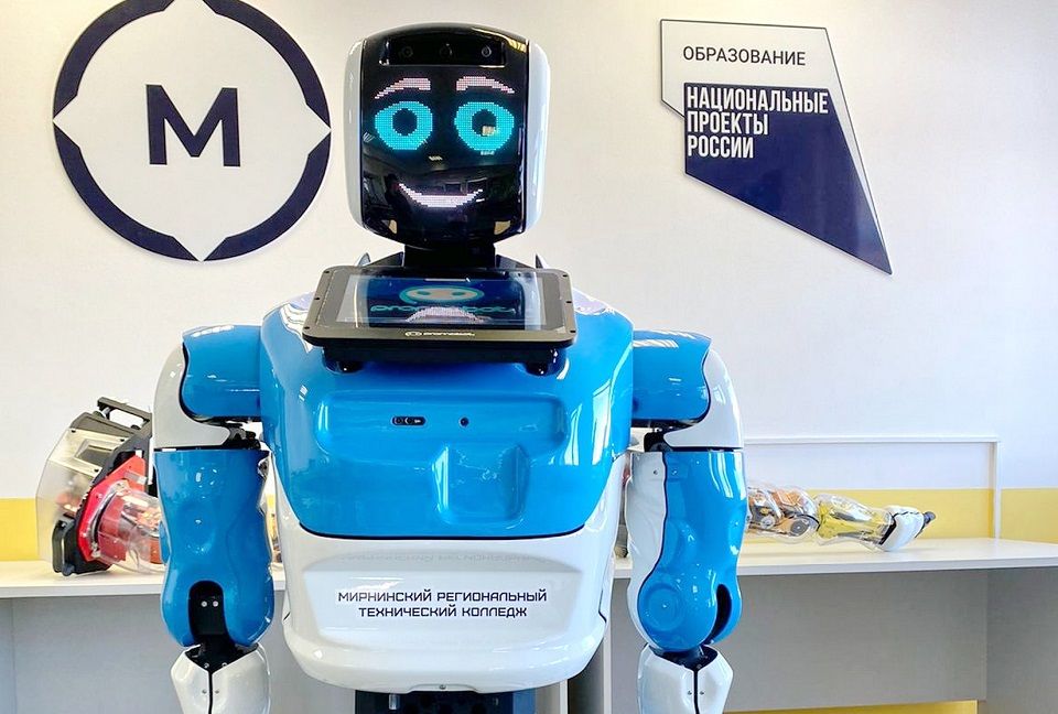 Вчера торжественно были открыты четыре новых мастерских. В мастерской «Промышленная робототехника» гостей встречал первый робот в Якутии. Машину, наделенную интеллектом, приобрели за счет грантовых средств «Территория АЛРОСА». Робот знаменит по всему миру и был презентован лидеру страны Владимиру Путину. Робот уже побывал лектором по сервисной робототехнике в региональном техническом колледже в Мирном. Также робот сможет вести занятия на якутском языке, сообщает производитель Олег Кивокурцев. Кроме того, он умеет рассказывать анекдоты и петь песни.
