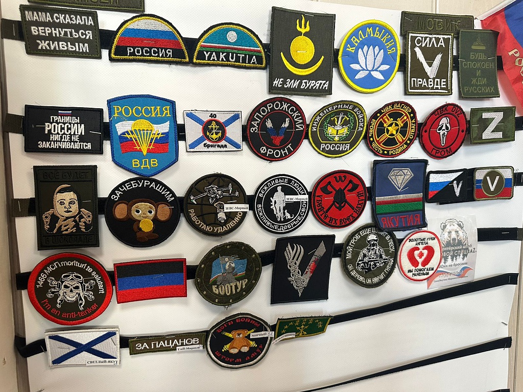 Шевроны бойцов в волонтерском штабе
