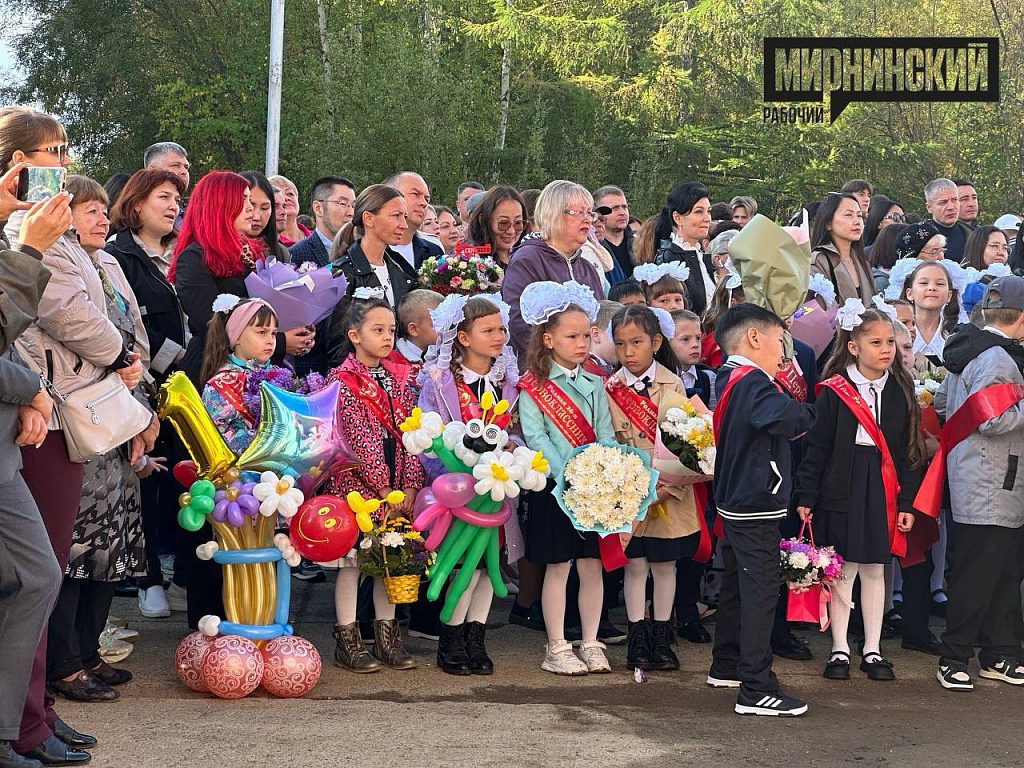 Школьная линейка началась с поднятия государственных флагов Российской Федерации и Республики Саха (Якутия). Почетное право предоставили знаменной группе школьного военно-патриотического клуба «Витязь».