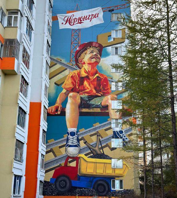 Масштабная подготовка к 50-летию со дня преобразования в город ведется в Нерюнгри. Свой юбилей город отметит в ноябре 2025 года, а пока здесь идет реновация архитектурного облика жилых зданий и городской среды согласно мастер-плану. Одним из проектов, призванных украсить Нерюнгри, стал мурал от команды из Мирного.