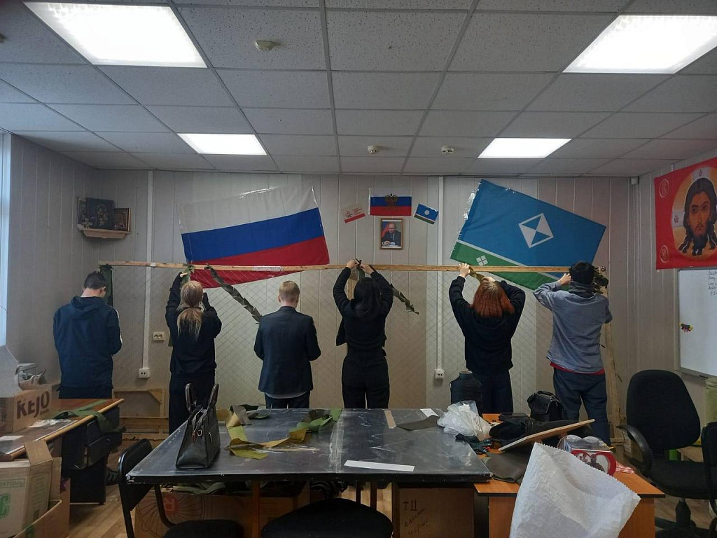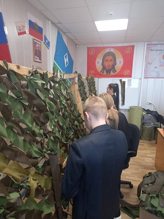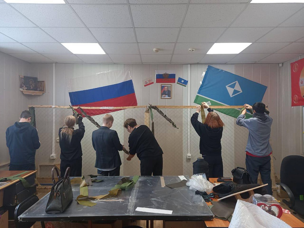 Учащиеся школы N 8 под руководством главного специалиста районного управления образования Дансаруновой Н.А. и социального педагога школы Самбяловой Т.Н. приняли участие в плетении маскировочных сетей для участников специальной военной операции.