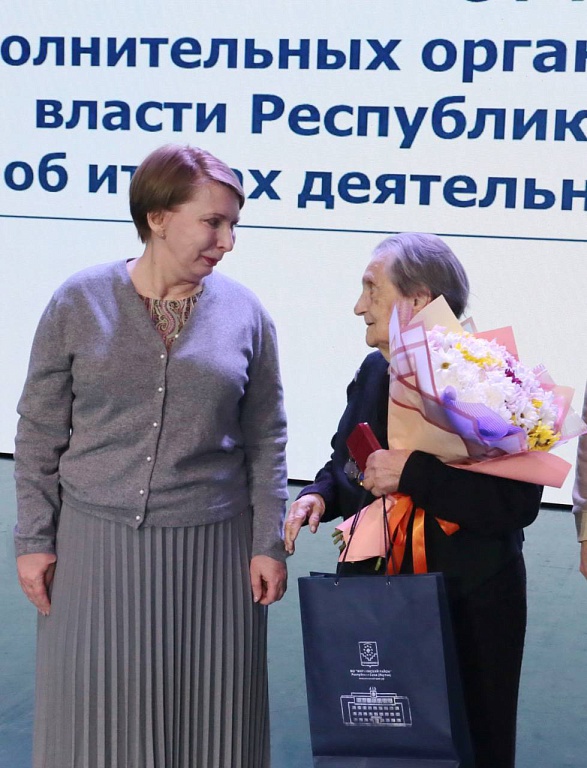 Заместитель председателя Правительства Якутии Ольга Балабкина поздравила Нину Ильиничну и с пожеланиями крепкого здоровья вручила 101-летней долгожительнице юбилейную медаль «80 лет Победы в Великой Отечественной войне 1941—1945 гг.»