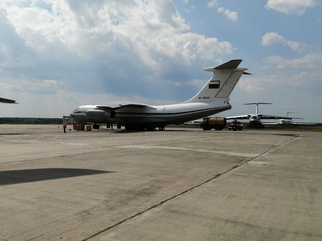Сегодня, 14 июля, в 12:30 на взлетно-посадочную полосу аэропорта Мирного сели два военных самолета Ил-76 Минобороны РФ, которые будут помогать тушить лесные пожары на территории республики, сообщает пресс-служба МО "Мирнинский район".