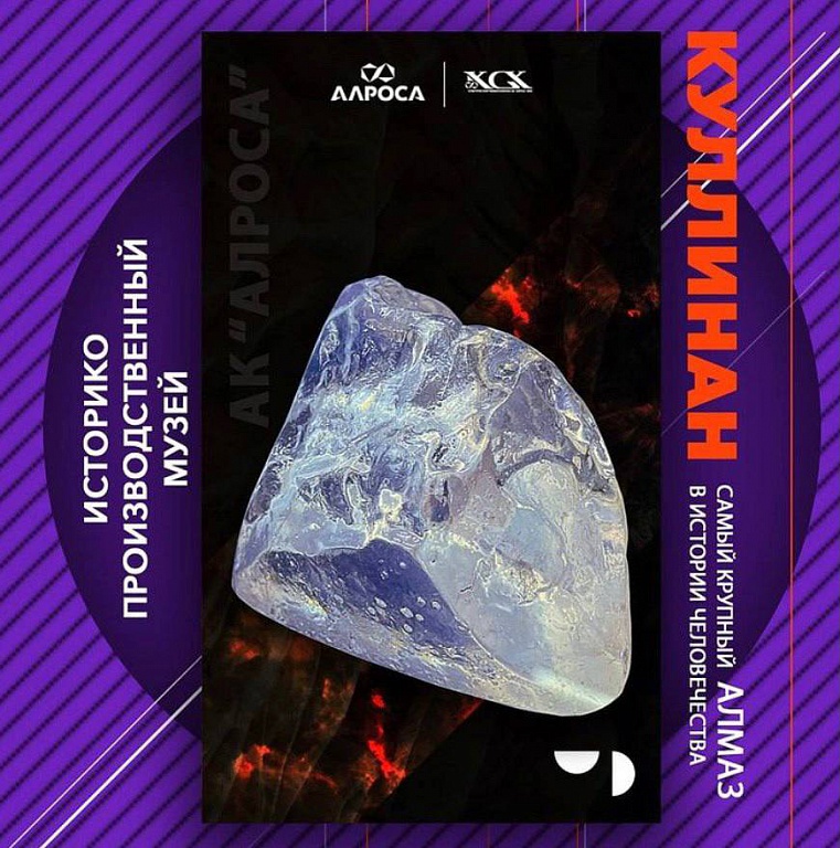 В музее АЛРОСА появилась копия самого крупного алмаза «Куллинан». Камень был назван в честь владельца шахты. Второе имя камня - Звезда Африки. Самый большой алмаз был добыт в ЮАР в 1905 году. Его вес составил 3106,75 карат. Алмаз был частью еще более крупного камня. Драгоценный камень был найден Фредериком Уэлсом.