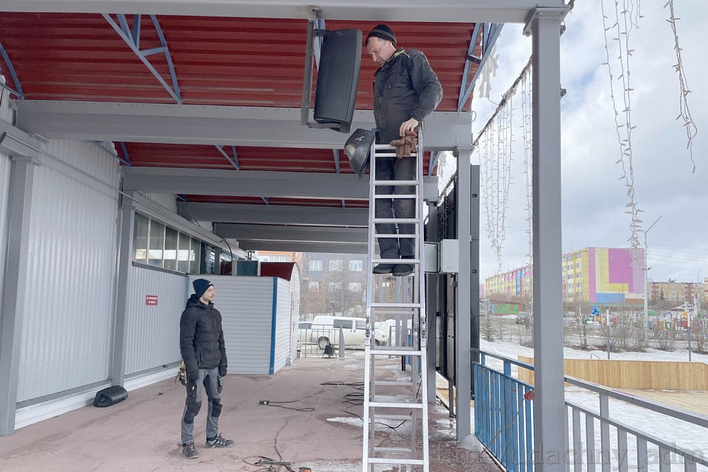 На центральной площади Удачного возле информационного экрана смонтировали звуковое оборудование, сообщает пресс-служба Удачного. Новая система «Всепогодная акустика» позволяет включать музыку и иное звуковое сопровождение на улице благодаря усилителю мощности.