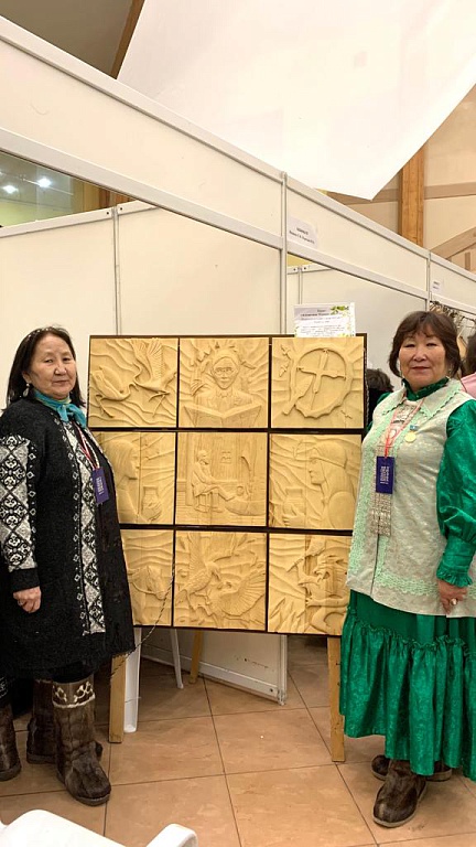 На мероприятие была направлена коллективная работа «Благословенная земля Олонхо». Изделие посвящено юбилею республики и изготовлено творческим объединением «Хранители традиций». Мастера ведут свою деятельность в Мирном. Работа была изготовлена под руководством Марии Захаровой, мастера по художественной резьбе.