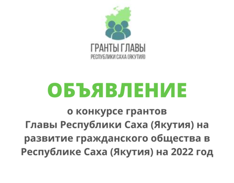 Начался прием заявок на конкурс грантов Главы РС(Я) на развитие гражданского общества на 2022 года. Заявки принимаются с 1 февраля до 2 марта 2022 года.
