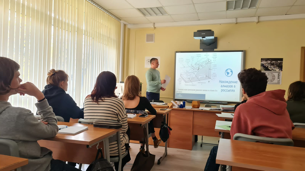 Всего студентов ждёт более 140 часов обучения, половина из которых – практика в ЕСО с настоящими драгоценными камнями. Но и теории уделят большое внимание: расскажут не только о минералогических и прочих свойствах алмазов, но и устройстве мирового алмазно-бриллиантового рынка и даже законодательстве в этой сфере. Например, в пятницу начальник участка механизированной сортировки ЕСО Вячеслав Буланов рассказывал слушателям об алмазных месторождениях мира.